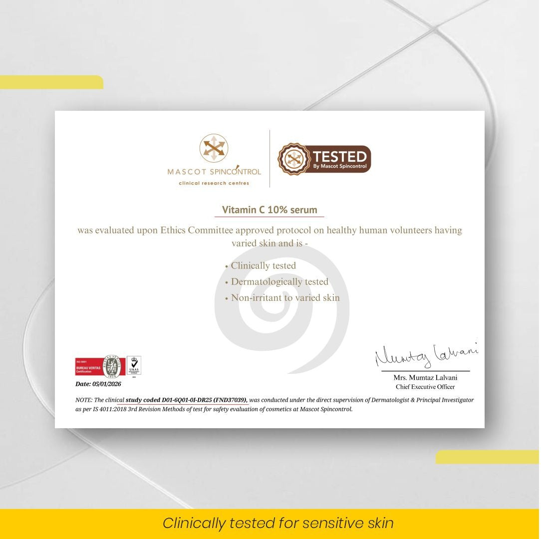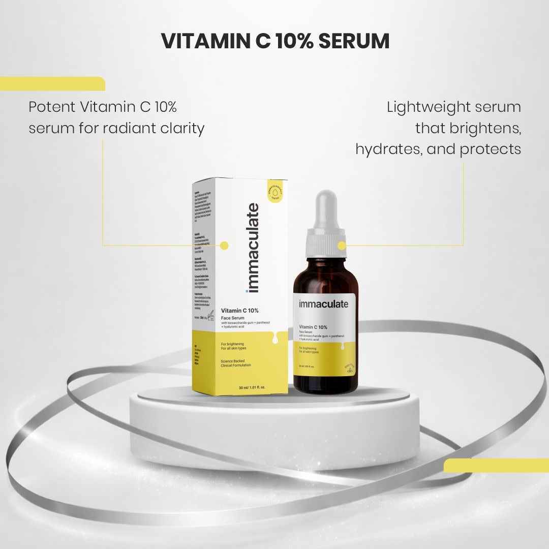 Vitamin C 10% face serum brightens, reduces dark spots, and supports collagen health.