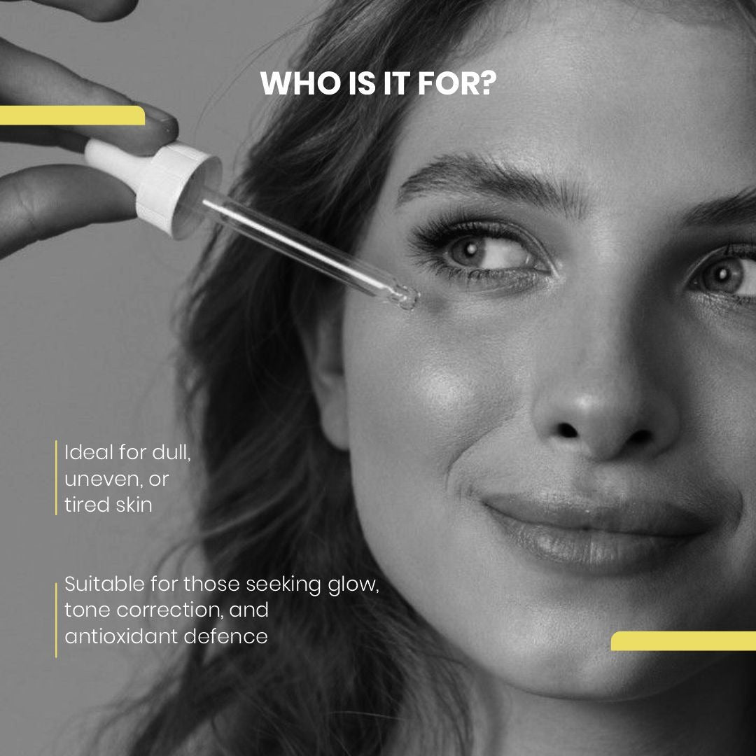 Stabilised Vitamin C works synergistically with antioxidants to improve radiance and skin clarity.